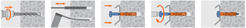 - Дюбель ND для полнотелых материалов, удлиненная версия NDL для полнотелых и пустотелых материалов