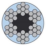 Обозначение тросов в оболочке (оплётке) ПВХ: 6х7+FC, 6x19+ FC. Первая цифра – число прядей троса. Вторая – число проволок в пряди. Буквы – материал сердечника: FC – органический.