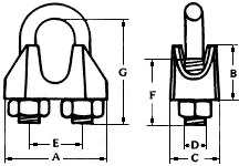 Зажимы троса DIN 741 изготавливаются из углеродистой стали с цинковым покрытием. Размеры зажимов определяется по диаметру зажимаемого троса.